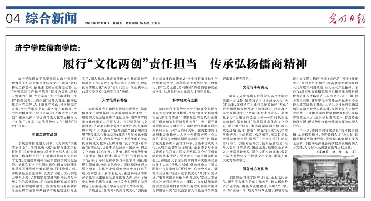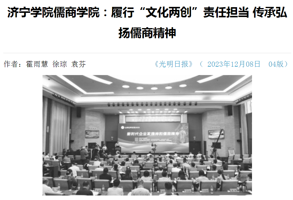 12月8日,《光明日报》刊发文章《伟德国际1949儒商学院:履行“文化两创”责任担当 传承弘扬儒商精神》。