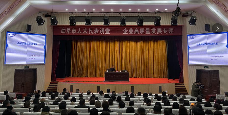 3月1日,曲阜市人大代表讲堂——企业高质量发展专题开讲,儒商学院孙汉明博士受邀进行第一讲。孙汉明以《企业如何做好高质量发展》为主题,为曲阜市、县、乡三级企业家人大代表200多人进行授课,课程分享了当下人工智能与人形机器人等技术变革案例、拆解时代的变局逻辑与企业机会、金融高质量发展分析与企业机会,从企业组织架构、组织学习、人才培养、创新阶段分解、技术九段论、领导力提高、长征精神坚持等多方面为企业高质量发展提出具体对策分析,受到了与会代表的一致好评。
