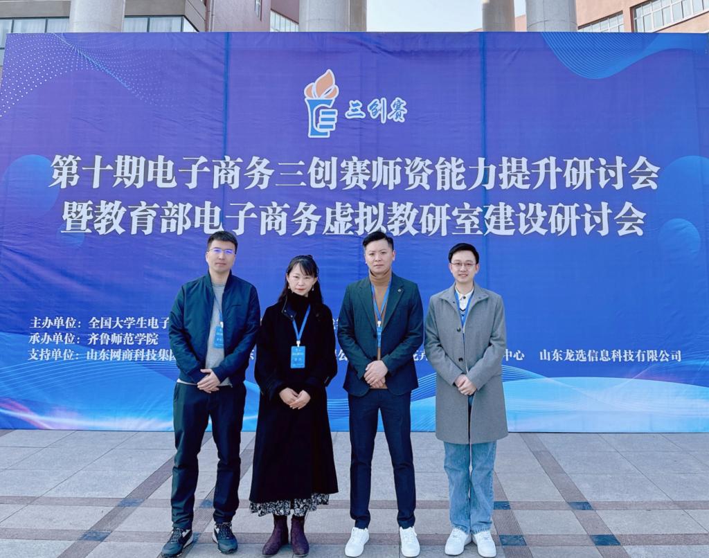 2024 年3月2日—3日,由全国大学生电子商务“创新、创意及创业”挑战赛竞赛组织委员会主办的第十期电子商务三创赛骨干师资能力提升研讨会暨教育部电子商务专业虚拟教研室建设研讨会在齐鲁师范学院召开,儒商学院学术副院长董腾、院长助理徐琮、电子商务及法律专业负责人韩露、旅游管理专业负责人赵月阳参加研讨会并被授予师资培训证书,同时选聘并颁发山东赛区专家委员会委员聘书。