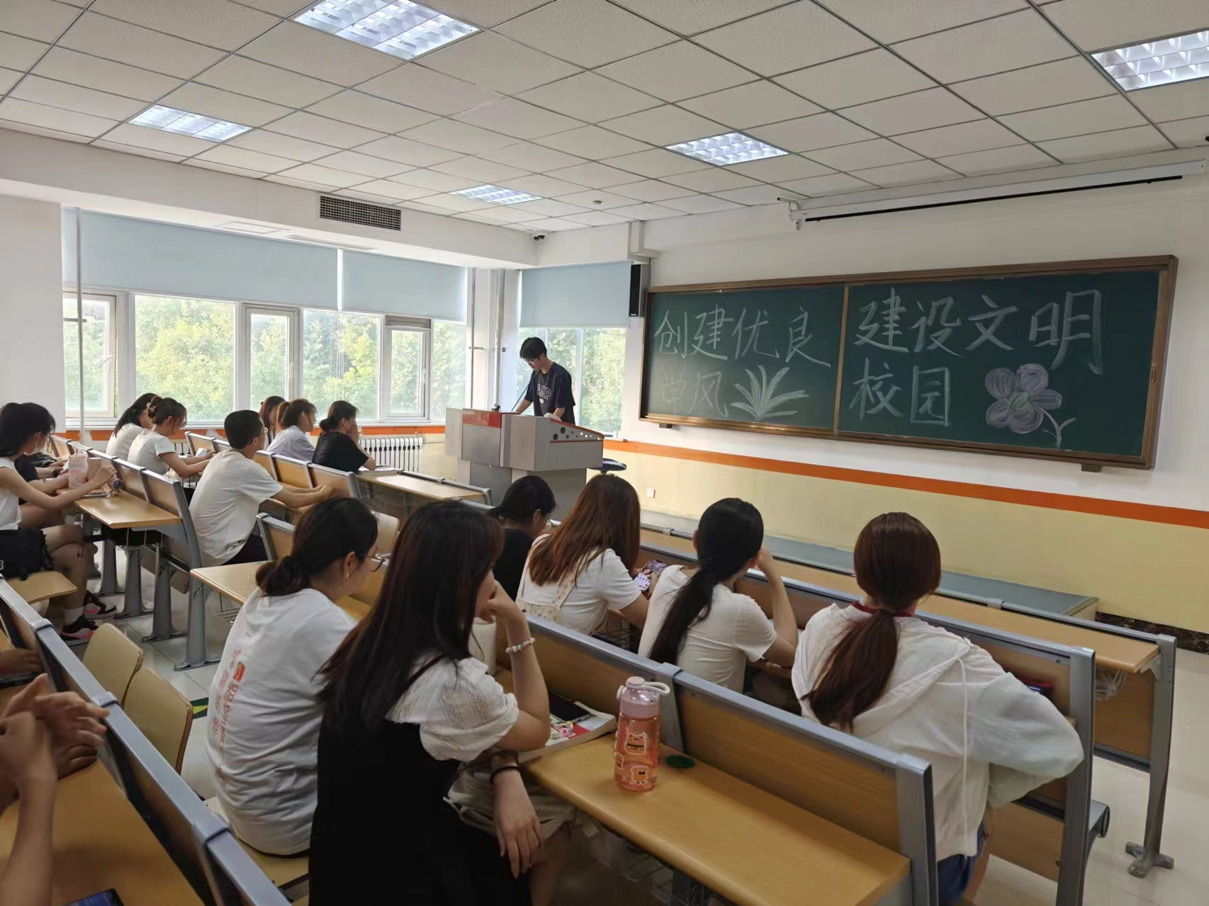 活动伊始,团支书为同学们讲述期末考试考风考纪,告诫同学们在即将到来的考试中,不要抱有侥幸心理,不要出现明知不可为偏要为的想法。紧接着,各团支部开展学习经验交流会,邀请班内成绩优异的同学进行经验与技巧分享,让同学们掌握更多学习经验,缓解其考前焦虑,营造良好期末复习氛围。随后,团支书号召同学们在加强学风建设的同时,不忘文明建设,只有将文明意识与文明习惯融入日常,才能进一步加强自身素养,培养良好的行为习惯。同学们听后纷纷表示要充分发挥学生学习的主体作用,树立正确的学习态度,认真完成各项学习任务,面对期末考试严阵以待,做好充足准备。