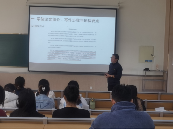 活动中,张超从毕业论文意义及评价、毕业论文写作的总体要求、毕业论文写作程序、过程性材料与终结性材料、论文写作中常见错误、论文写作辅导安排、学术不端界定等多个层面,讲述了本科毕业论文各组成部分、各时间节点需要注意的重点问题,讲述中不乏生动的案例展示以及活泼的现场互动,活动成功达到了预热动员、普及推广、警示督促等目标。