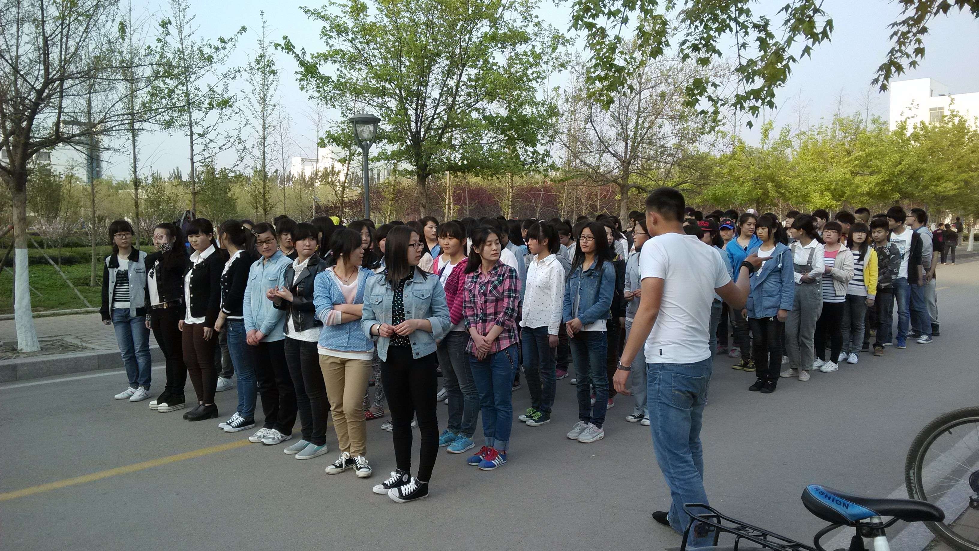 为了更好的迎接运动会的到来,2014年4月9日下午4:30,我系方队于经管系楼前正式开始训练,方队队员们积极参与,以良好的精神状态进行第一天的方队培训,为我系方队的精彩展演贡献出自己的力量。