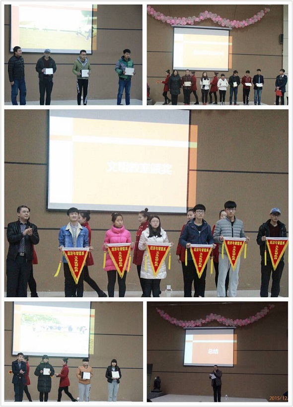 2015年12月9日下午4:00,经济与管理系表彰大会于我系报告厅内举行,经济与管理系党总支书记乔东华,党总支副书记陆波,团总支书记赵家凯,辅导员孔德涛、徐邦震、冯艳梅、闫晓晓出席本次大会。