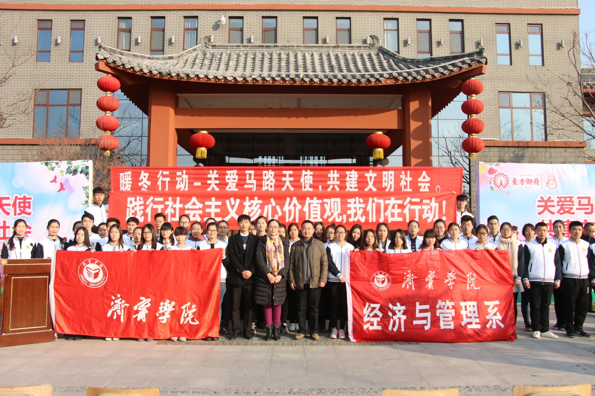 2016年12月10日下午,由曲阜市文明办,共青团曲阜市委员,共青团伟德国际1949委员会主办,曲阜市环卫局、曲阜市人民医院东方御府地产、孔府家酒业有限公司和伟德国际1949经济与管理系协办的主题为"关爱马路天使,共建文明社会"的暖冬行动在东方御府活动场地开展。