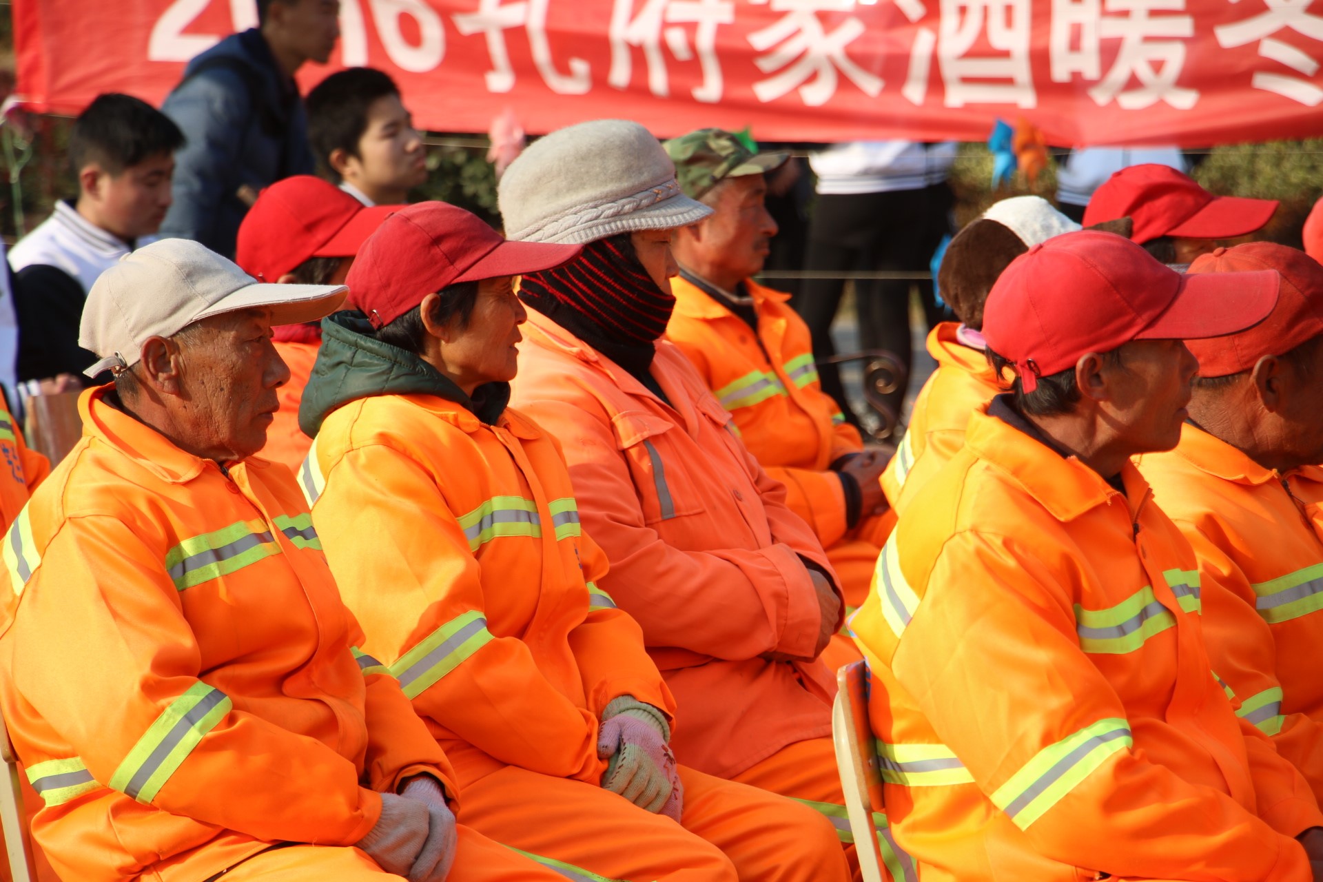 本次行动首先现场工作人员对相关道具,背景音乐进行了仔细反复的检查,并热情引领到相关领导就座,而且电视台媒体人员也做好了最后准备工作;随后主持人登台宣布“暖冬行动——关爱马路天使,共建文明社会”活动正式开始并介绍参加典礼的领导及嘉宾;其次曲阜市文明办、曲阜市环卫局、伟德国际1949等领导依次进行了讲话,领导们讲话严谨真挚而又不失风趣,引起了台下志愿者们的阵阵掌声;最后,活动邀请十位环卫工人代表上台,各领导分别把慰问品送给了他们,并和他们握手相谈,交流分享,现场气氛和乐融融。
