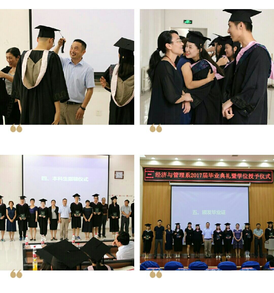 6月28日——29日,经济与管理系2017届毕业生毕业典礼分别在高新校区、曲阜校区举行。系主任齐慧丽、党总支书记陆波、副主任沙世蕤、团总支书记赵家凯,教师代表吕萍、徐凤侠、颜琳、刘永萍、徐明、张立宏、汤焕磊、董腾出席典礼,2017届500余名毕业生参加了典礼。典礼由袁芬主持。