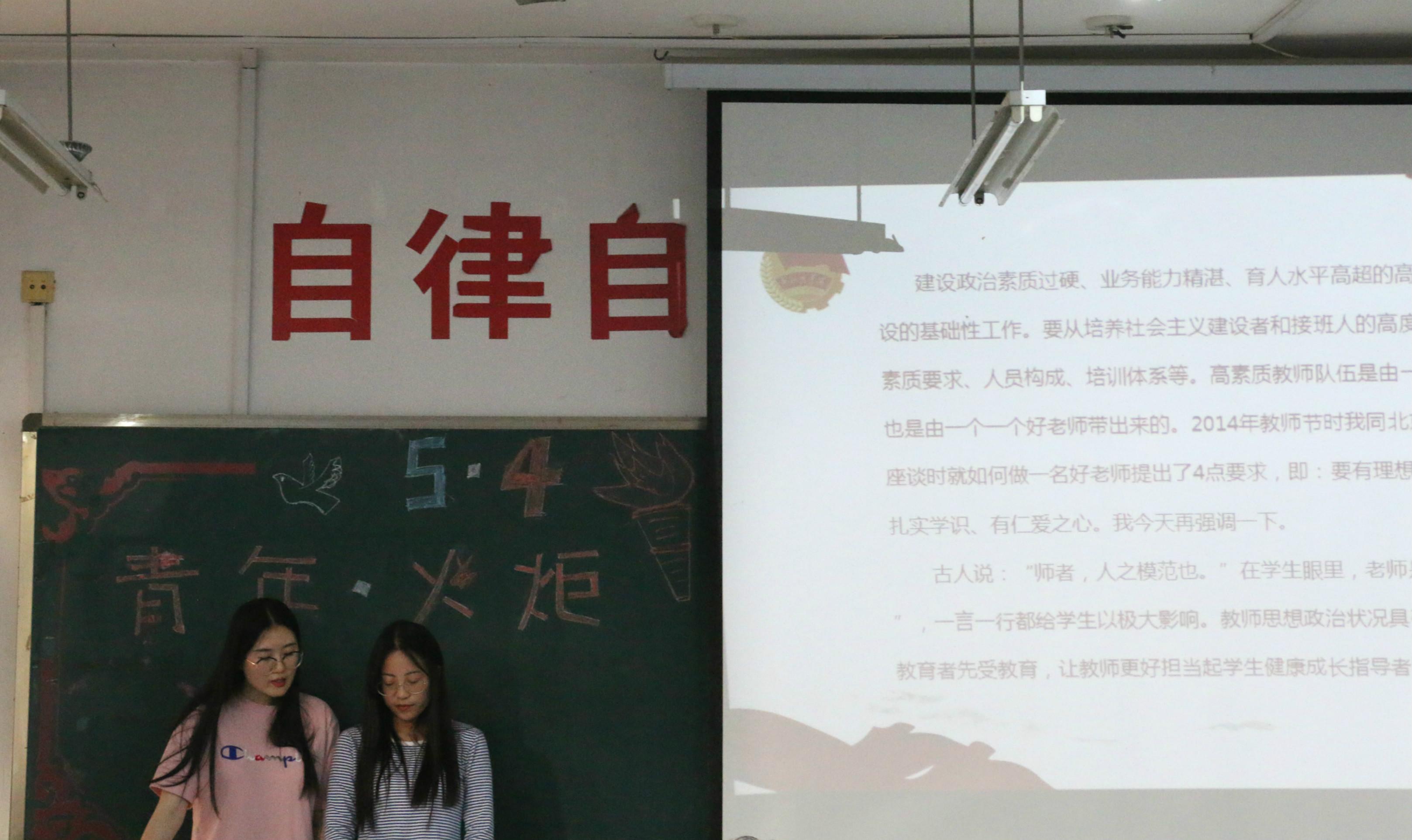 活动中,大家共同回顾了五四运动的历史,重温了那段充满爱国主义情怀的光辉岁月。紧接着,大家认真学习了习近平总书记在北京大学师生座谈会上的重要讲话,总书记的亲切关怀和深情嘱托在师生中引起了热烈的反响和共鸣。教师代表在发言中表示,习近平总书记讲话主要围绕培养德智体美全面发展的社会主义建设者和接班人这一主线,高校师生要努力成为实现中华民族伟大复兴的生力军,作为教师要以“四有好老师”、“四个引路人”和“四个相统一”标准严格要求自己,静心教书、潜心育人,努力培育良好的校风和学风,引导青年大学生追梦,助力青年大学生圆梦。同学们纷纷表示,要接力传承和发扬五四精神,牢记并努力践行习近平总书记提出的“要忠于祖国,忠于人民;要立鸿鹄志,做奋斗者;要求真学问,练真本领;要知行合一,做实干家”的要求。