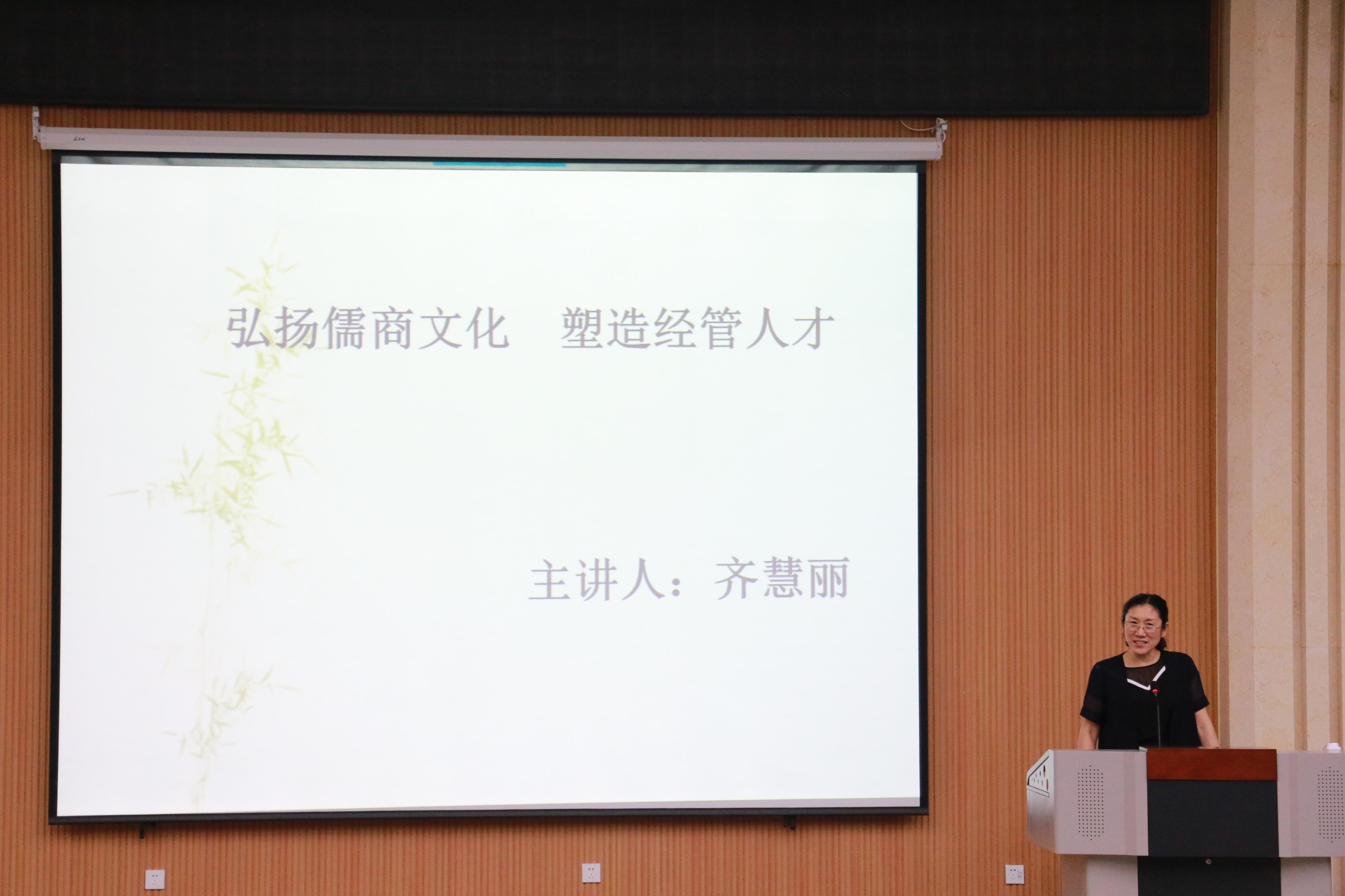 齐慧丽主任通过把儒商文化与晋商、徽商文化相对比,向同学们介绍了儒商文化“仁者爱人、以人为本、互惠互利、和气生财”的精神内涵以及传承儒商文化重要意义。随后,从“为什么读大学、为什么要选择经济与管理系,如何度过大学、传承儒商文化、塑造完美人格”三个问题入手,引领我系同学深入思考如何铸造儒商文化之魂,使同学们受益匪浅。齐主任还寄托出希望同学们学习儒商文化,践行儒商精神,弘扬传统文化,增强文化自信,塑造经管人才,成就济院精英的美好期待,勉励学生进一步弘扬儒商精神,担当时代赋予的责任和使命。