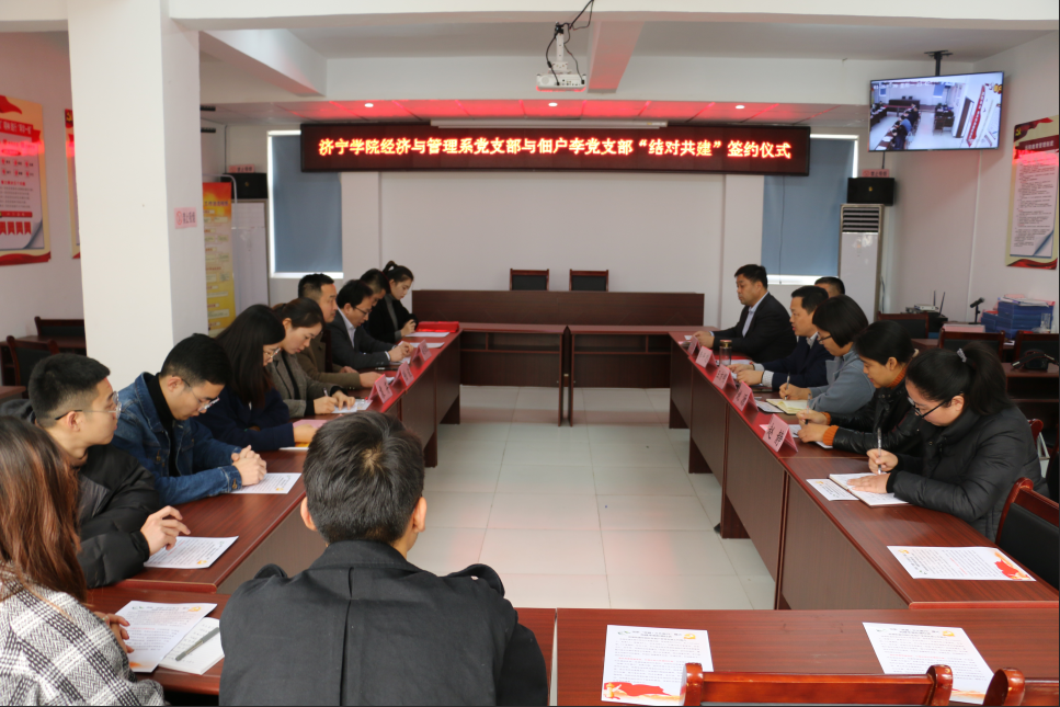 11月29日,经济与管理系党总支与鱼台县滨湖街道佃户李村开展“结对共建”活动并举行签约仪式。鱼台县县委组织部副部长王方明、团县委书记姚源、经济开发区党工委书记李平忠、滨湖街道党工委委员赵静、佃户李村党支部书记朱兴峰、经济与管理系党总支书记陆波、党总支副书记兼教工党支部书记赵家凯、学生党支部书记袁芬参加本次活动。