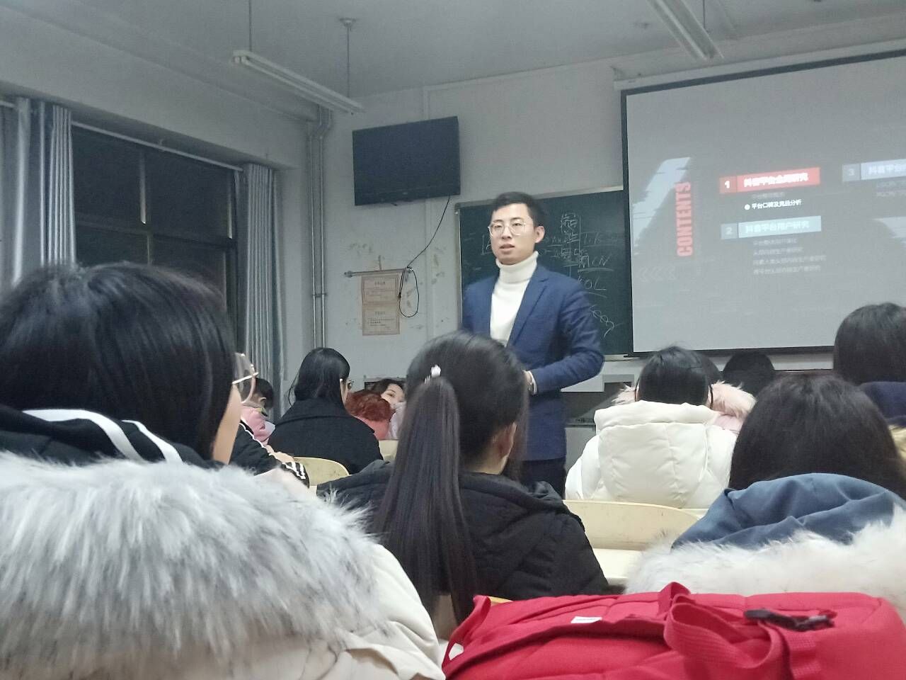12月5日晚七点,经济与管理系邀请山东网商集团企业高校事业部曹萌经理在3号楼B504教室为电子商务及法律专业学生举办主题为“2018·抖音研究报告”的讲座。企业方班主任王永飞、电子商务及法律专业全体同学参加了本次讲座。