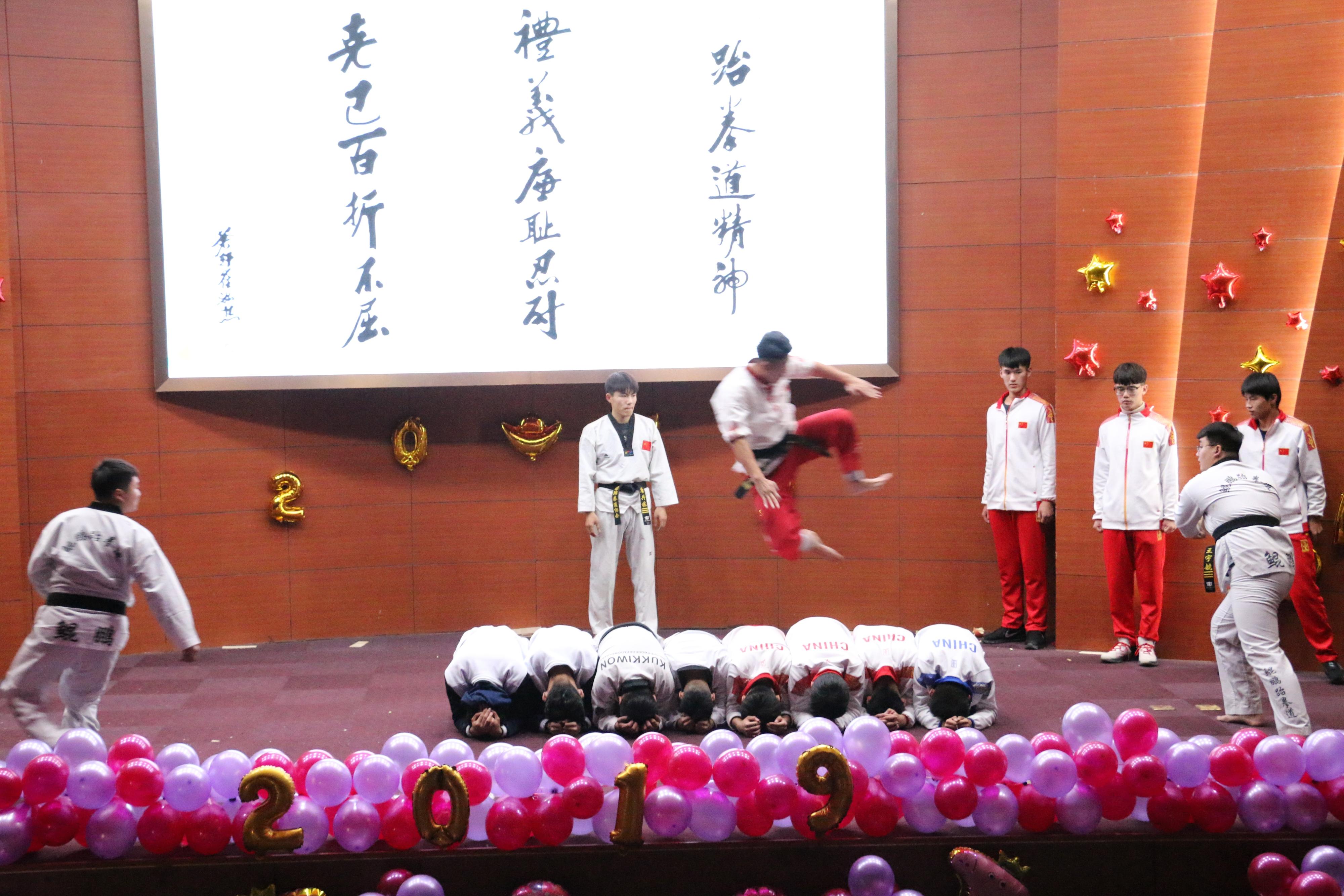 本次晚会分为三个篇章:迎新筑芳华、织梦绘青春、扬帆启征程。首先,齐慧丽主任上台致辞,对我系一年来取得的丰硕成果进行了总结,对未来蓝图做出展望,并向全体师生致以新年的祝福。晚会表彰了2018年优秀集体和先进个人,以榜样的力量激励同学们积极进取,奋发向上。晚会节目形式多样、精彩不断,为现场观众献上了一场精彩绝伦的视听盛宴。活泼动感的开场舞《海草海草》点燃了观众们的热情,揭开了晚会的序幕。自由搏斗术《武动青春》展现了当代大学生的青春活力。三句半《欢天喜地话经管》以诙谐幽默的形式回顾了我系一年的历程。中国古代乐器合奏《沧海一声笑》、歌伴舞《礼仪之邦》古今贯通,体现我系坚守传承中华优秀传统文化的职责。小品《带谁去北京》则以幽默诙谐的语言感染力,展现了我系七大社团特色。朗诵《与祖国同行 铸华夏辉煌——四十年岁月如歌》,诵出了对祖国的满腔热爱,展现新时代青年理想。辅导员老师合唱歌曲《中国人》表达了身为华夏儿女的自豪之情。系主任齐慧丽、党总支书记陆波、教学秘书冯艳梅以及副教授吕萍老师以一曲《年青的朋友来相会》点燃全场,歌声悠扬,空灵婉转,将晚会气氛推向高潮。最后,晚会在合唱《相亲相爱》中落下帷幕。