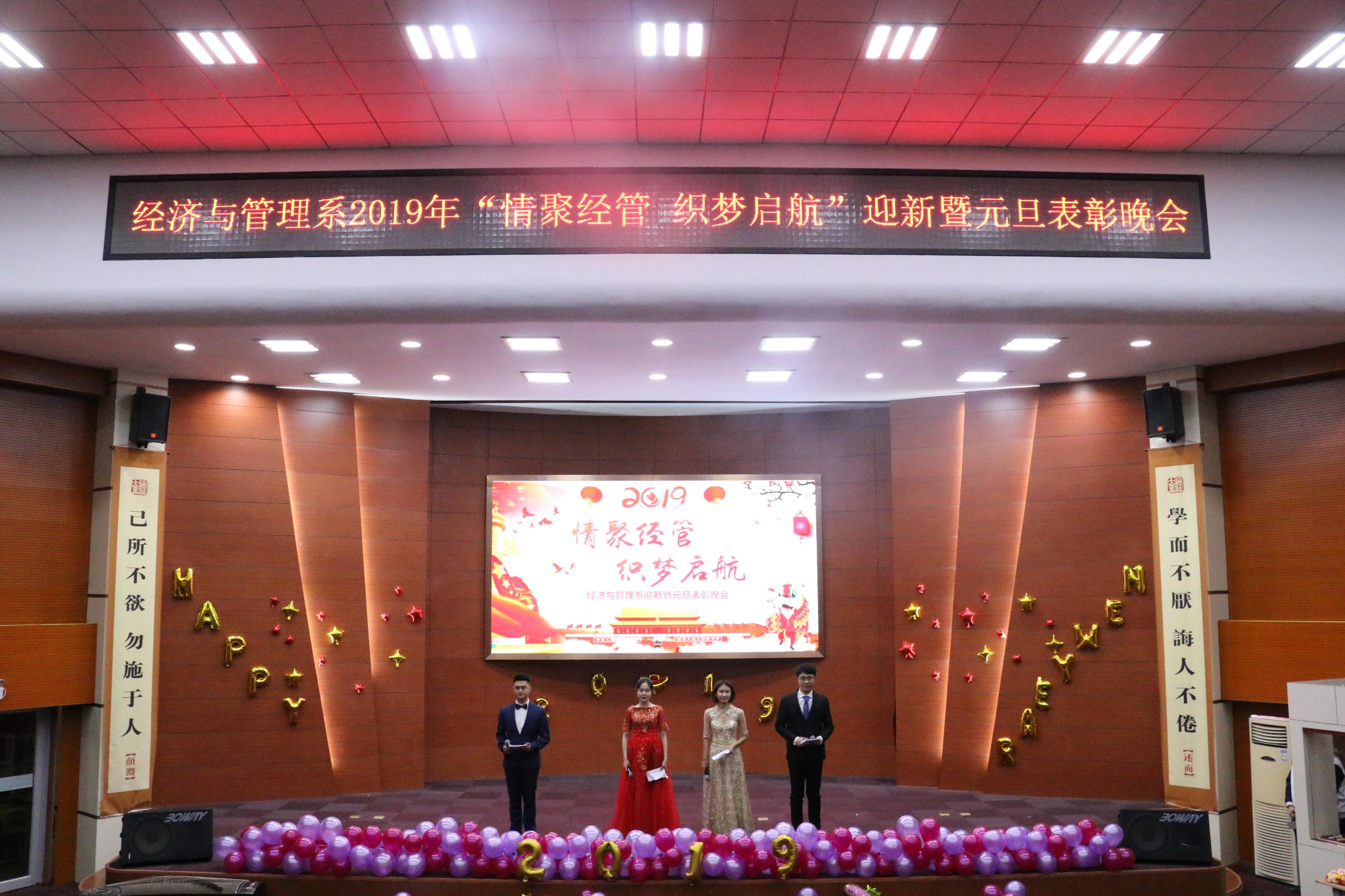 “情聚经管,织梦起航”。12月26日晚,经济与管理系于理科楼报告厅举行迎新暨元旦表彰晚会。
