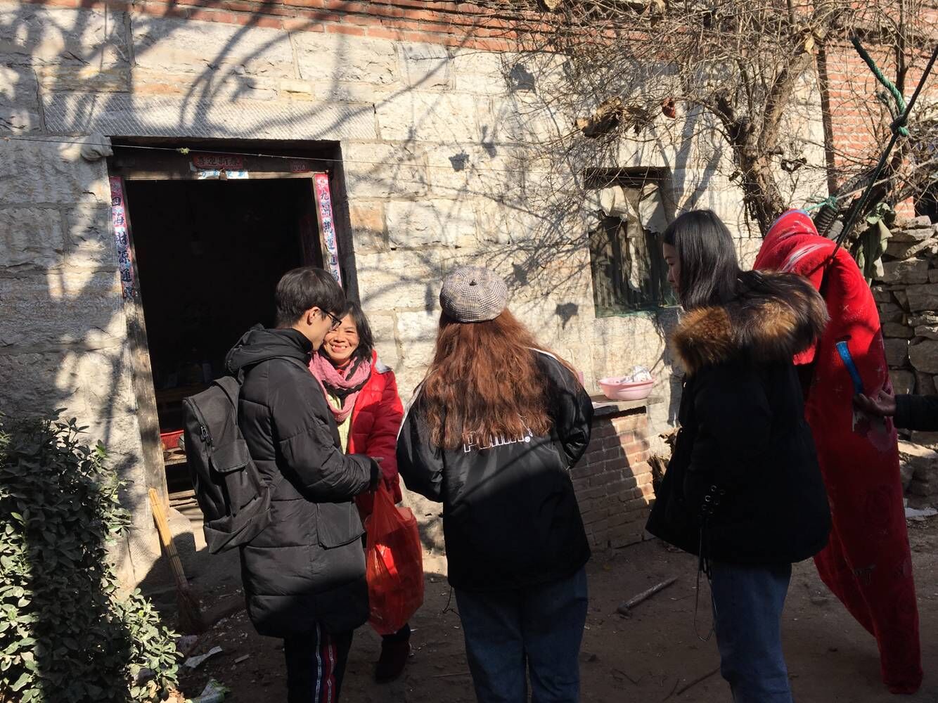 本次实践活动以冬日送温暖为中心内容开展,主要内容包括赠送一份爱心春联和一些爱心物资等形式。我系志愿者们前往被帮扶街道村委会进行调查采访。嘉祥县纸坊镇西焦城村村支书张志习及会计王根民详细地向我们介绍了该村贫困人口数量及贫困情况。该村共有900户左右常住人口,其中25户困难人口,2户留守儿童家庭,5户孤寡老人家庭,此次扶贫任务艰难。