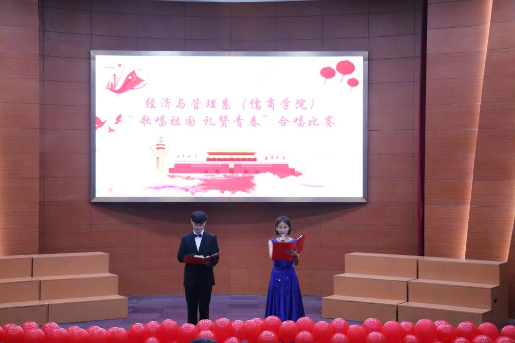 11月6日晚,经济与管理系(儒商学院)在理科楼报告厅举行“歌唱祖国 礼赞青春”——第十一届班歌比赛。经济与管理系(儒商学院)党总支相关负责人出席本次活动,马克思主义学院负责同志应邀一同观看了比赛。
