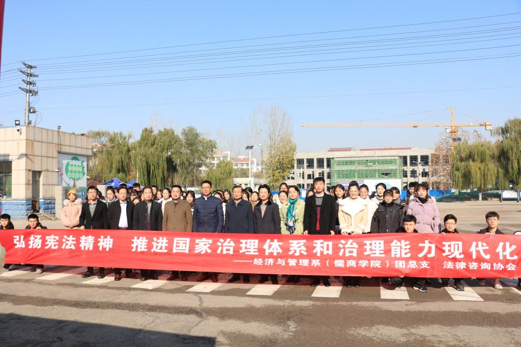 为深入贯彻落实党的十九大精神和十九届二中、三中、四中全会精神以及全国、全省教育大会精神,认真落实习近平总书记关于宪法学习宣传教育的系列重要指示精神,推动全校集中深入学习宣传宪法,弘扬宪法精神,维护宪法权威。12月4日,在第二个“宪法宣传周”、第六个国家宪法日到来之际,经济与管理系(儒商学院)团总支、法律咨询协会举办了宪法宣誓签名活动。校党委副书记马恩出席签名仪式,党委宣传部、经济与管理系等相关单位负责人,广大师生到现场参加活动。