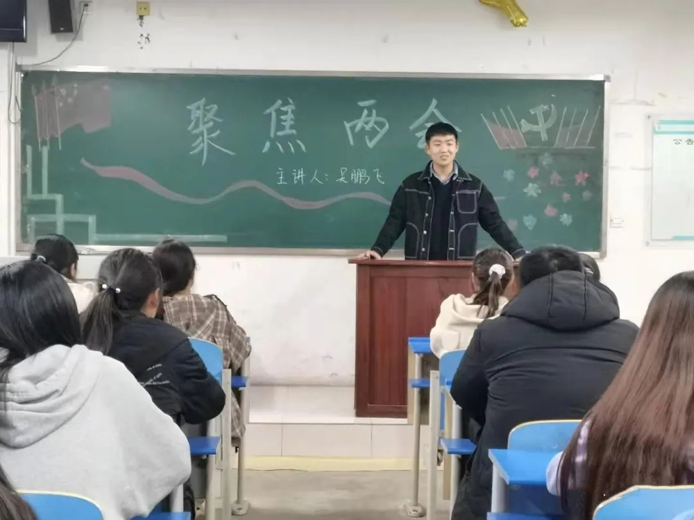 为深入学习“两会”精神,进一步增强大学生的政治意识、大局意识、责任意识,3月10日,经济与管理系采用线上班级群交流两会感受和线下青马研、研习社开展宣讲活动双学习模式深入学习两会精神,吴鹏飞和张传玉同学主持宣讲此次主题活动。