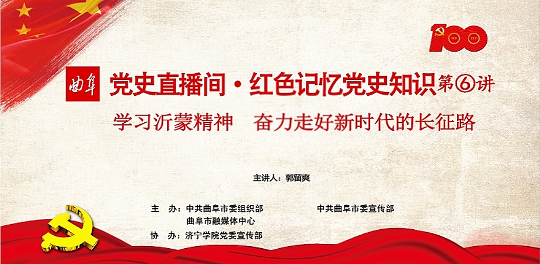 5月7日,由曲阜市委组织部、曲阜市委宣传部和曲阜市融媒体中心主办,伟德国际1949党委宣传部协办的新一期“曲阜党史直播间·红色记忆党史知识讲座”开播,我系大学生党史学习教育宣讲团成员、学生党员郭留爽走进直播间在线讲党史。曲阜市广大党员干部群众在线观看了直播。