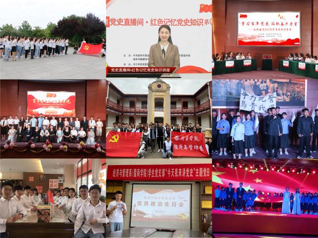 儒商学院学生党支部是教育部第二批“全国党建工作样板支部”。长期以来,在学校党委的坚强领导下,党支部将党建工作和思想建设、文化传承、人才培养、社会服务等环节深度融合,形成了一套可复制、推广的“一四四五”党建工作模式。“一”是始终抓住理论学习和党性教育这条主线;“四”是实现“队伍建设、基本制度、阵地建设、活动开展”四个标准化;“四”是实施“铸魂、文化、育人、先锋”四项工程;“五”是培育“思政、文化、理论社团、心理、实践”五大育人品牌。近三年支部荣获“济宁市先进基层党组织”等荣誉9项;以党建带团建,指导团支部获评“2021年度全国活力团支部”;支部委员积极开展党建工作研究,主持参与省级课题2项、校级课题6项,发表论文6篇;学生党员获国家级荣誉18项、省级荣誉52项、校级荣誉获得率100%。建党一百周年之际,党支部通过集中培训、专题学习、参观教育、专题宣讲,打造“今天我来讲党史”主题党日、“党史周周学”线上课堂、“走进电视台党史直播间”、“大学生党史宣讲大赛”、“党员先锋‘六个一’ 我为群众办实事”等特色活动,在支部内掀起党史学习教育热潮。