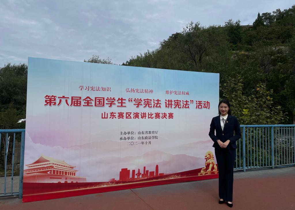 10月10日,由山东省教育厅主办的第六届全国学生“学宪法讲宪法”活动山东赛区演讲比赛决赛在山东政法学院举行。高校组共有来自省内70余所高校的大学生报名参赛,我校儒商学院郑舒文同学在此次比赛中荣获高校组三等奖。