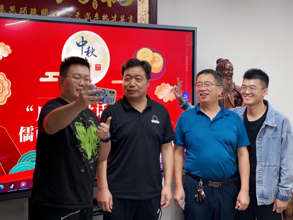 “校长,我能和您拍张照吗?我想发给家人看看,让他们知道我在学校很好。”活动接近尾声,与会学生拿出手机,邀请校长自拍合影,定格中秋夜美好与温馨瞬间。