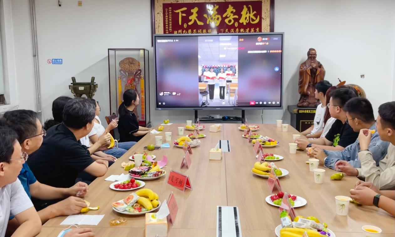 座谈会上,王清明与师生代表亲切交谈,他向坚守在工作岗位的老师们表达了赞许和感谢,对同学们在疫情防控中积极向上的精神状态表示了肯定,并向大家送上节日的诚挚问候和美好祝福。他勉励同学们胸怀远大理想,勤奋刻苦学习,磨炼意志品质,锻炼强健体魄,努力践行新时代青年的责任和担当。他叮嘱同学们要常怀感恩之心,不要忘记给远方的亲人打个电话,送上思念与祝福。最后,王清明同与会师生一起,共同观看了儒商学院“月满中秋话团圆”线上联欢抖音直播。