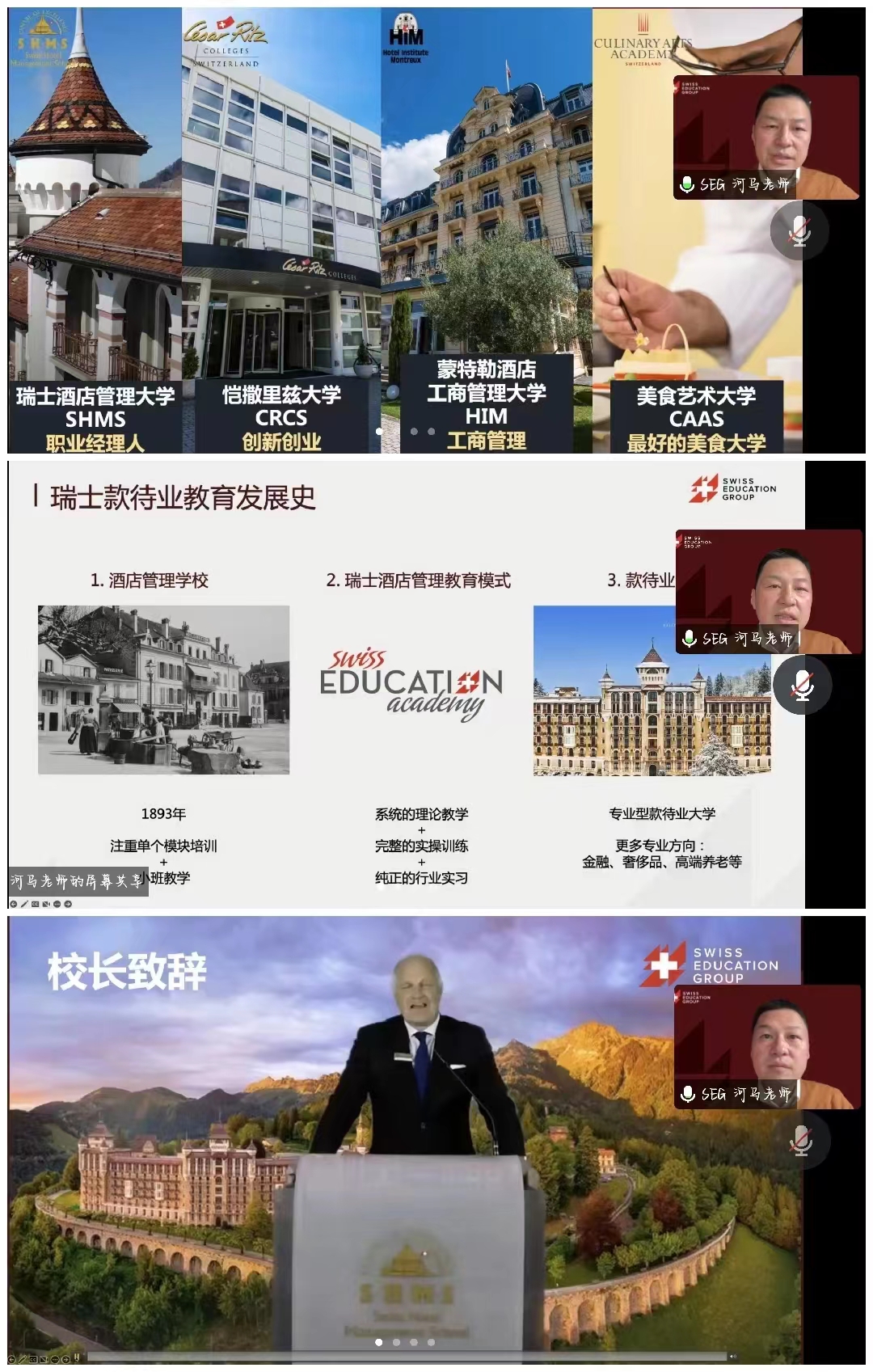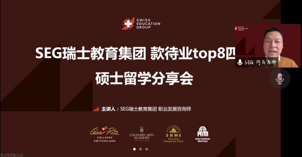 为开拓同学们的视野,为儒商学院学子提供更广泛、更多元化的留学机会,11月9日,儒商学院诚邀瑞士教育集团(SEG)联合举办SEG硕士直通车线上专题讲座,儒商学院辅导员和经济管理、酒店管理专业、旅游管理专业的毕业生参加了此次讲座。