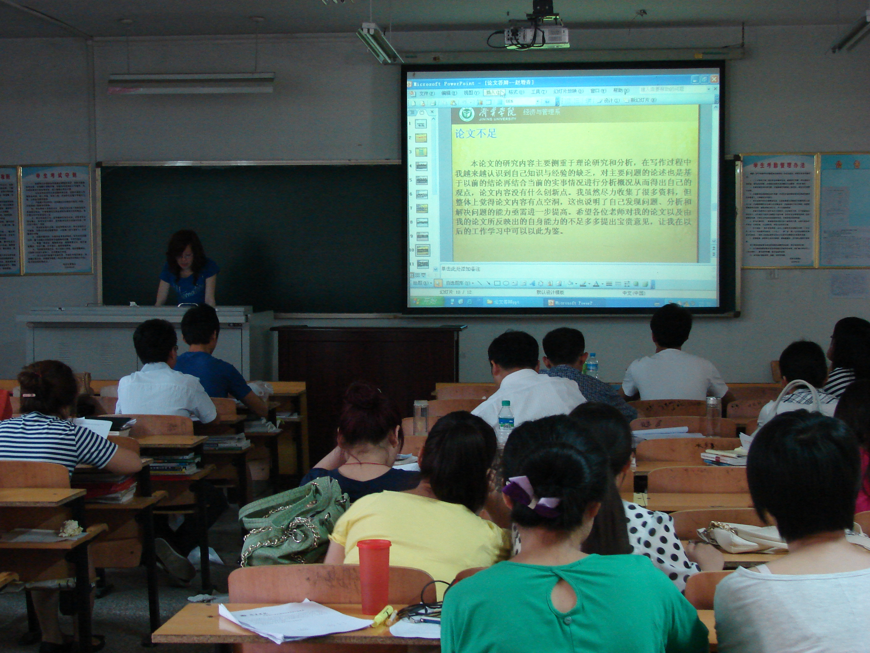 6月10日,经济与管理系2011届行政管理本科专业毕业生论文答辩工作在文科楼B102等7个多媒体教室分组同时进行。系毕业论文指导老师听取了毕业生关于论文的陈述及答辩。