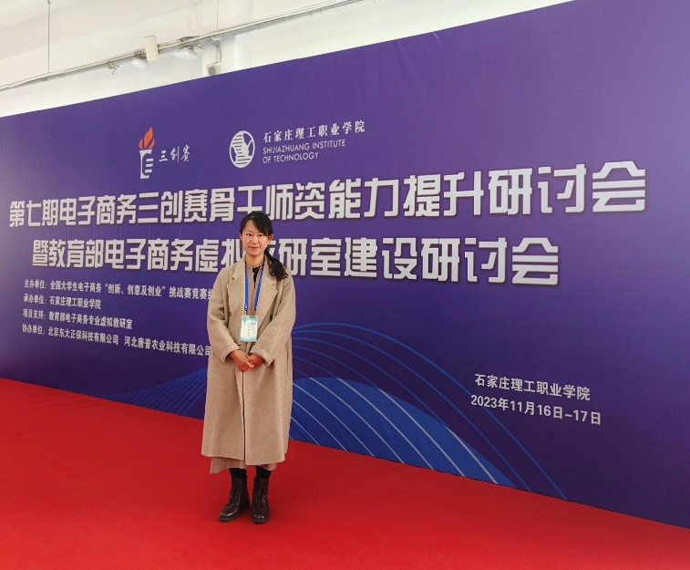 2023年11月16日—17日,由全国大学生电子商务“创新、创意及创业”挑战赛竞赛组织委员会主办的第七期电子商务三创赛骨干师资能力提升研讨会暨教育部电子商务专业虚拟教研室建设研讨会在石家庄理工职业学院召开,儒商学院电子商务及法律专业负责人韩露参加研讨会并被授予师资培训证书。