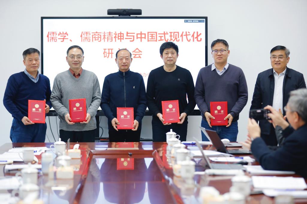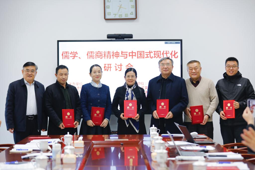 孟子研究院党委书记、院长陈晓霞致辞,指出课题通过彰显诚信等为核心内容的儒学思想、儒商精神,有利于推动企业在追求经济效益的同时,以新的视角重新审视企业经营的社会成本、环境成本与个人价值,从而促进整个社会文明水平的提升。山东曲阜文化建设示范区党工委副书记、推进办公室主任朱湘华宣读课题组特聘专家名单,聘任山东大学儒学高等研究院特聘教授、中华孔子学会副会长杨朝明为首席研究专家,聘任北京大学、中央财经大学、复旦大学、上海交通大学、上海财经大学等30位专家为特聘研究专家。专家听取了课题组关于阶段性研究成果的汇报,与会专家对课题研究提出了意见、建议。北京大学新结构经济学研究院研究员、国内发展合作部主任赵秋运做了题为《由奇迹到复兴:中国式现代化进程与中华民族文化复兴》报告。
