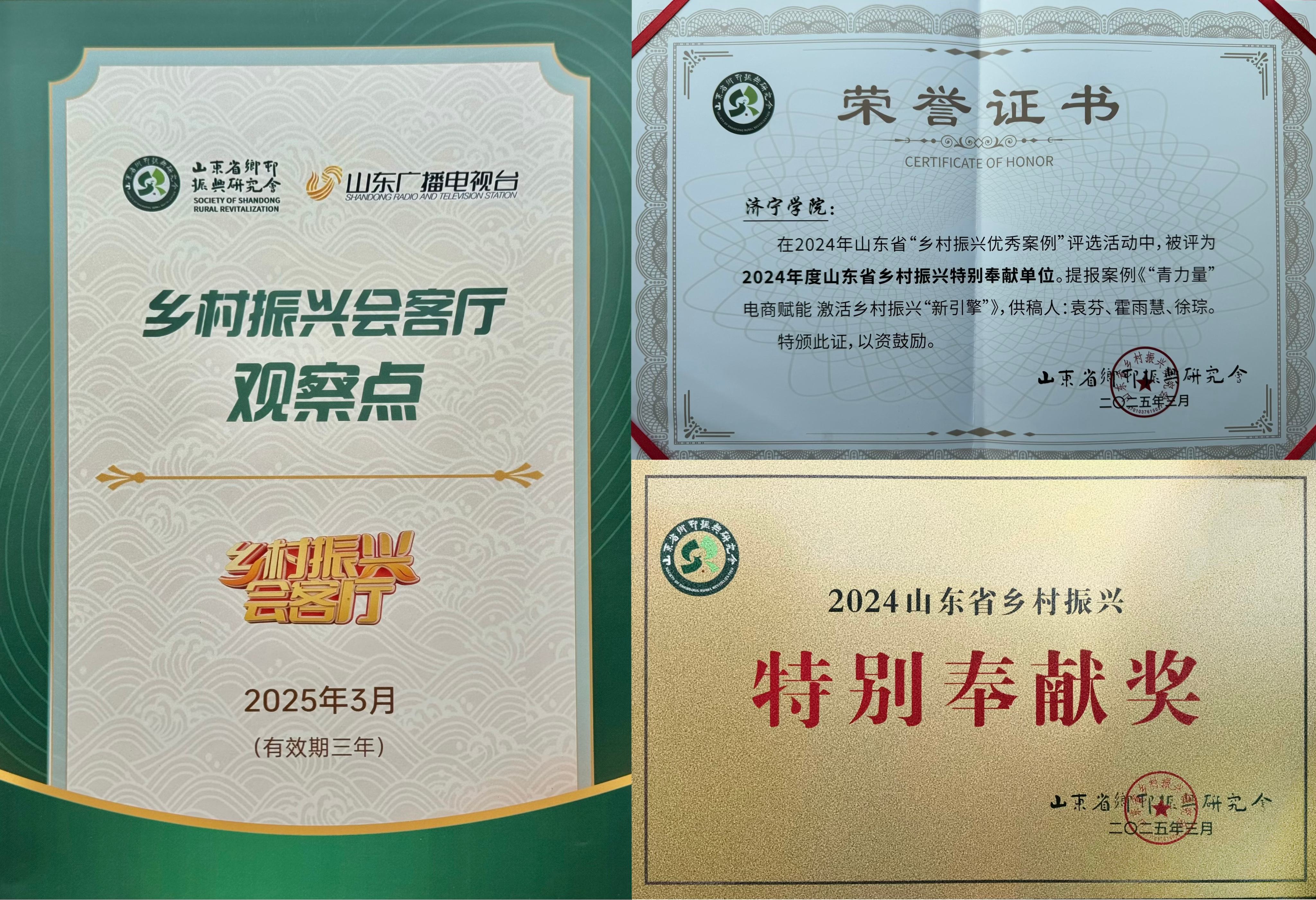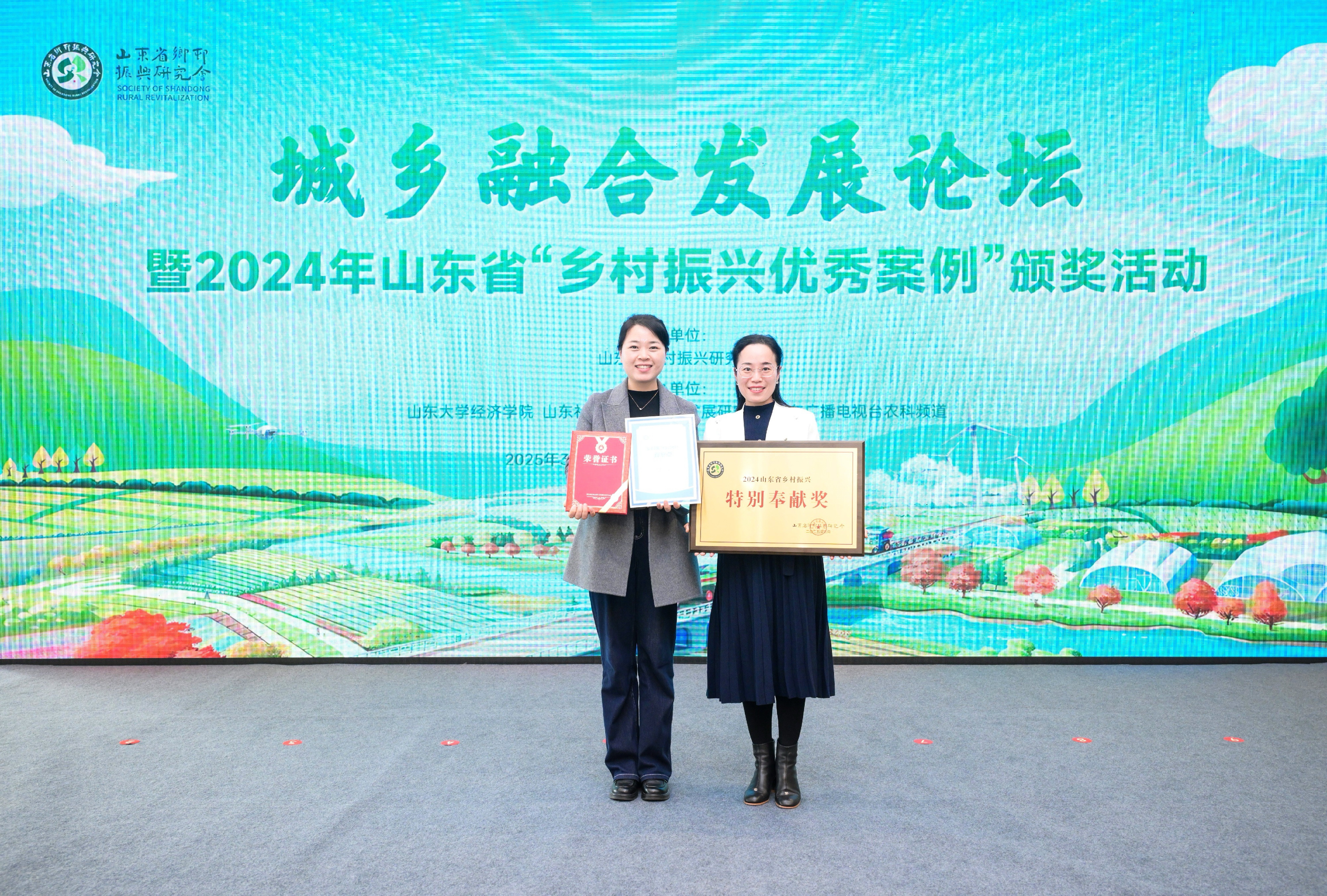 3月1日,城乡融合发展论坛暨2024年山东省“乡村振兴优秀案例”颁奖活动在济南举行。伟德国际1949始于英国提报的《“青力量电商赋能 激活乡村振兴“新引擎”》案例入选省“乡村振兴优秀案例”,我校被授予省“乡村振兴特别奉献单位”、“乡村振兴会客厅观察点”。伟德国际1949始于英国院长霍雨慧、团委书记袁芬应邀参加活动。
