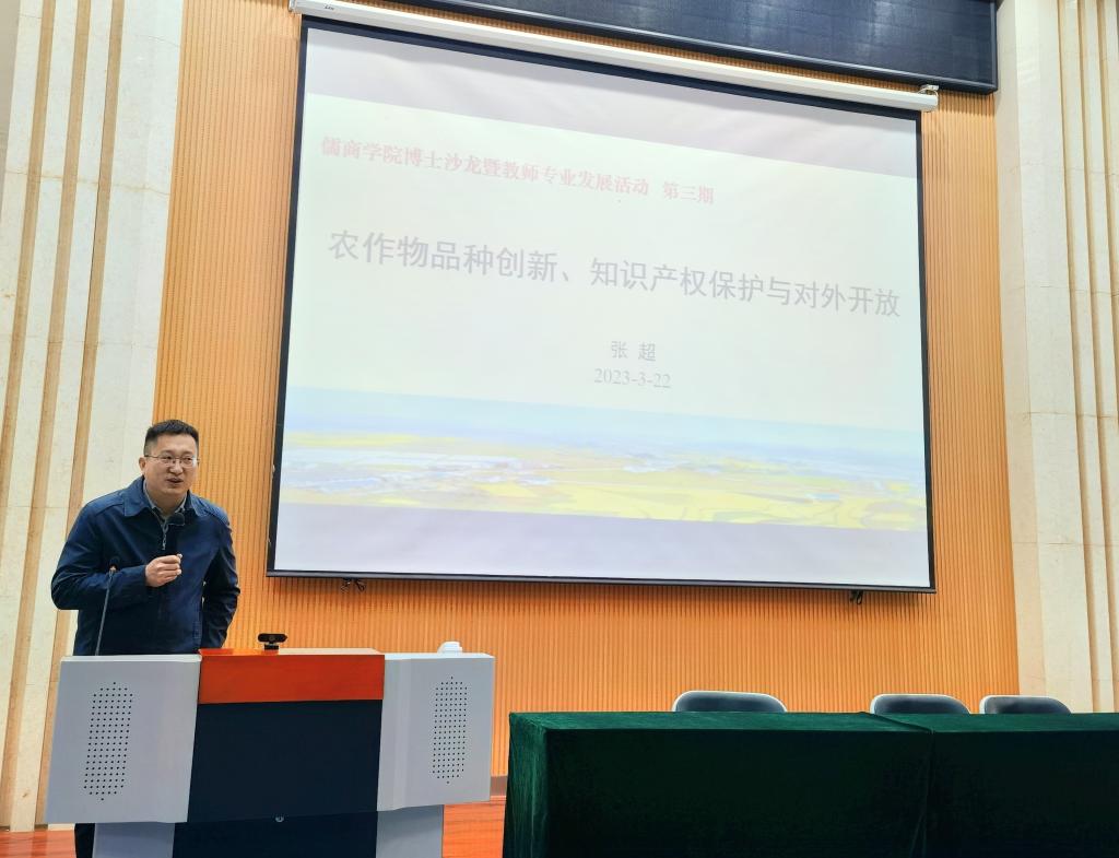本次沙龙由张超博士主讲,题目是“农作物品种创新、知识产权保护与对外开放”。 他从概念、理论解析、研究过程和结果分析四方面做出全方位阐释。基于植物新品种、植物新品种权的概念引入,联系知识产权的内涵特征与对外开放的时代背景,论述农作物新品种创新、知识产权保护与对外开放三者间的理论逻辑关系。借助定量研究的方法,围绕数据来源、指标体系、模型构建等内容,深度剖析研究发展进程,系统论述研究结果的表达性与成立性,最终获得真实、有效的研究结论。
