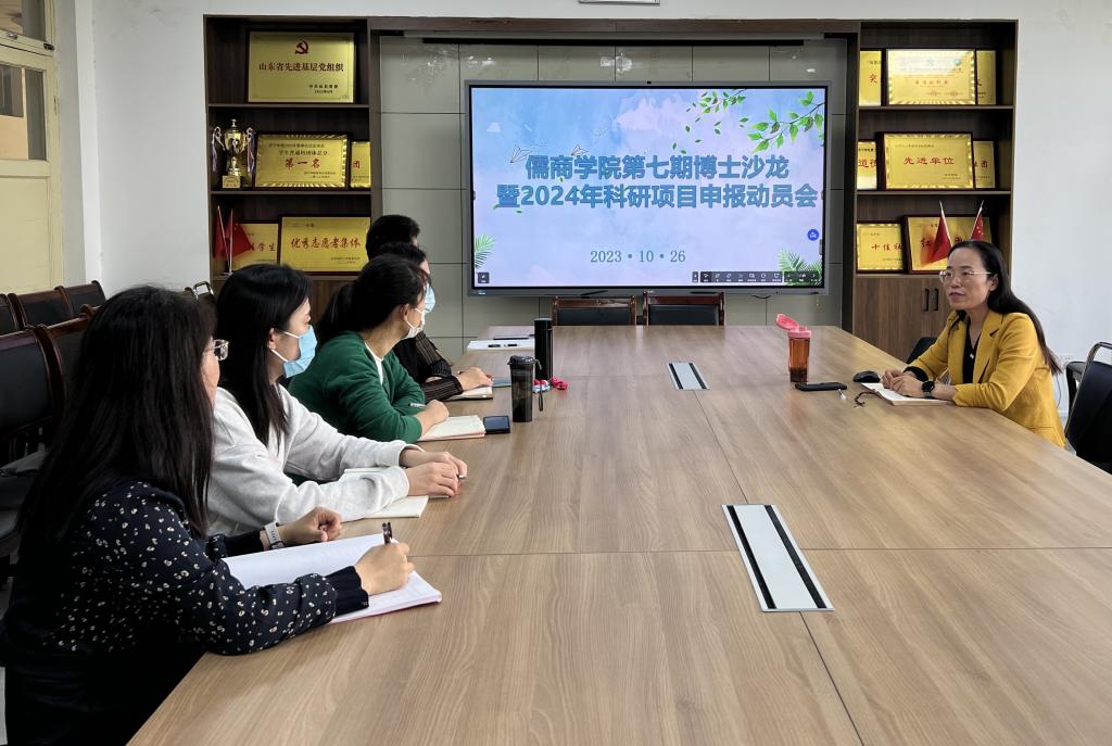 为持续深化儒商学院“博士沙龙”协作科研氛围,加强有组织科研,助力学院科研高质量发展,10月26日,儒商学院举办第七期“博士沙龙”暨2024年科研项目申请动员会。学院相关博士、青年教师参加报告会,报告会由儒商学院院长霍雨慧主持并进行申报动员,2023年教育部人文社科研究青年基金立项人李伟博士做经验发言。