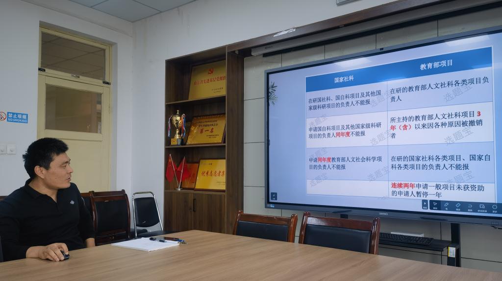霍雨慧向大家介绍了各级人文社科纵向项目的基本情况及儒商学院申报现状,结合自身实践,从评审程序、选题来源、项目书撰写、注意事项等具体方面分享了体会,对新进博士熟悉申报要求和流程、骨干教师提升申报书质量起到了较好的指导效果。她希望全体老师充分认识到高级别科研项目对提升学校科研实力、教师个人发展的重要性;要勇于担当,主动作为,坚定信念,不忘科研初心,协同攻坚,通过基金申报实现自己的科研目标和人生理想。
