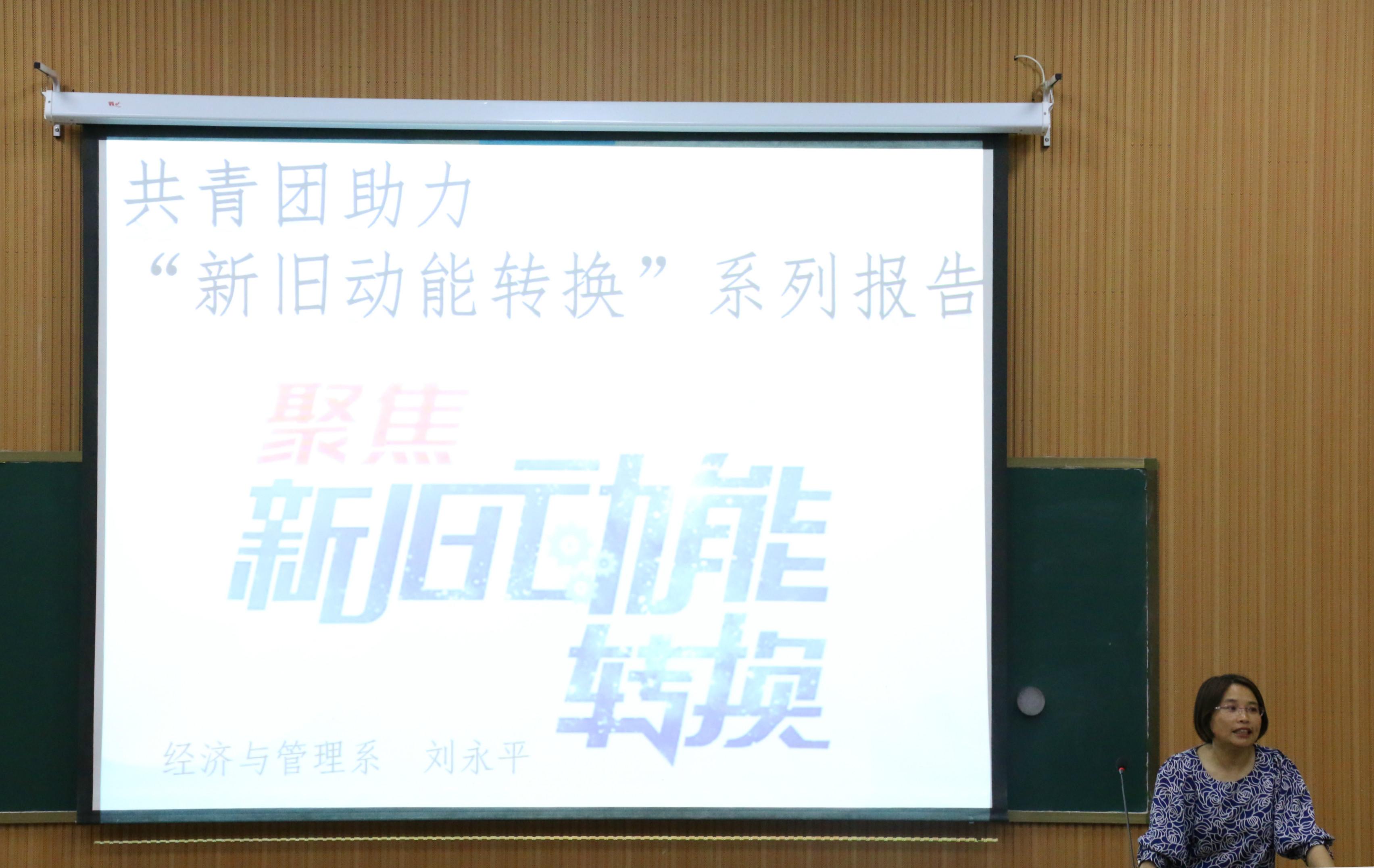 5月3日晚,由共青团济宁学员委员会主办的“共青团‘青年大学习’行动之共青团助力‘新旧动能转换’系列报告会”开讲,经济与管理系刘永萍副教授做了题为《新旧动能转换的意义、机遇和路径》的报告。