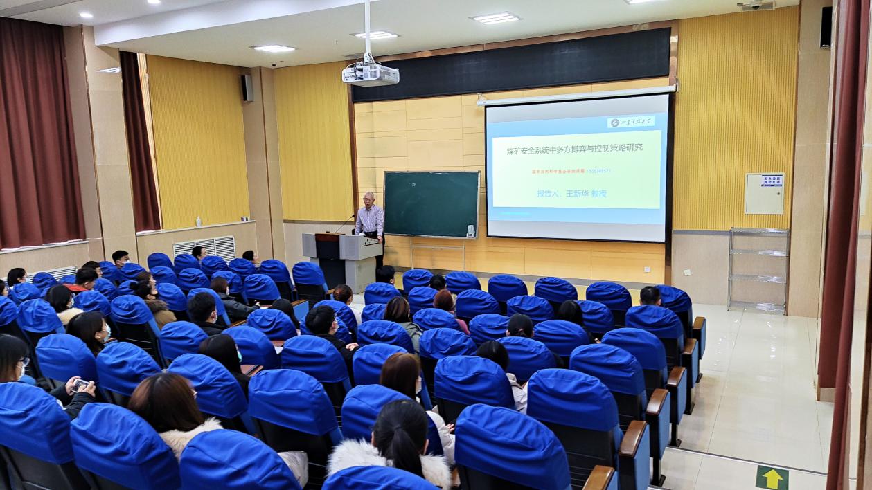 2020年12月8日下午2:30分,山东科技大学王新华教授在我校2号楼 B101报告厅为经济与管理系师生作题为《煤矿安全系统中多方博弈与控制策略研究》的学术报告。