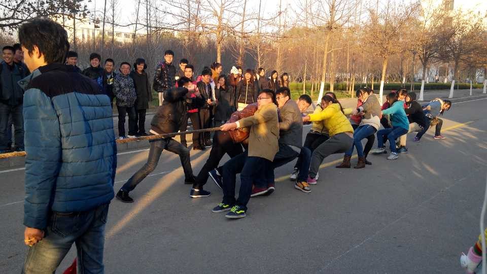 2013年11月28日下午4:00,我系在系门前举行了拔河比赛第二场初赛。各班体育委员担任了比赛评委。 这场比赛是由11级经济学四班对战12级经济学一班。比赛过程中,各班参赛同学精神饱满,斗志昂扬,积极为班级荣誉贡献自己的力量。经过各班同学的共同努力,最终12级经济学一班取得胜利,晋级接下来的复赛。 拔河比赛,是集所有人的力量于一处,大家劲往一处使,同心协力,赢得比赛。此次活动,不仅很好的锻炼了同学们的体质,还增进了大家之间的友谊,增强了集体荣誉感。