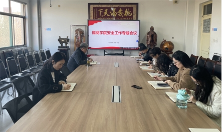 3月2日上午,儒商学院召开安全工作专题会议。会上,学院党委书记乔东华传达了学校有关安全稳定工作的会议精神,结合学院实际,从学生请销假制度、交通安全、电信诈骗、文明上网、饮食安全、实验室安全、心理健康、舆情稳定、疫情防控等方面,分析了学院的安全稳定形势,并就相关工作进行了详细安排和部署。乔东华对做好学院安全稳定工作提出了三点要求:一是要提高政治站位,深化思想认识,安全稳定是学院发展的前提和基础,要增强风险意识、底线意识、责任意识,把安全稳定工作摆在更加突出的位置;二是要压实责任,严格执行值班制度,在行动上狠抓落实,把安全稳定的各项任务和措施落到实处;三是要全面掌握安全风险点,认真做好安全风险隐患排查以及应急预案,把安全稳定工作做好、做实、做细。