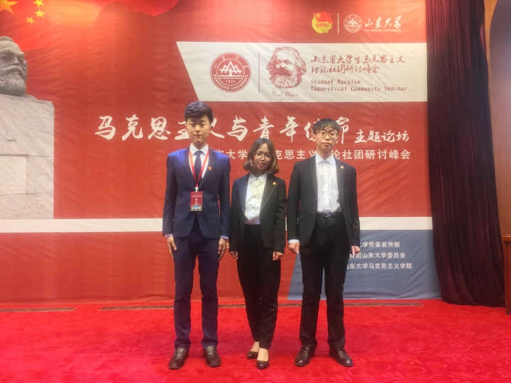 5月12日——13日,“马克思主义与青年使命”主题论坛暨山东省大学生马克思主义理论社团研讨峰会在山东大学中心校区举办。青年马克思主义者研究会和习近平新时代中国特色社会主义研究会青年大学生代表孟祥宇、熊宇和张敏辉参加了此次峰会。