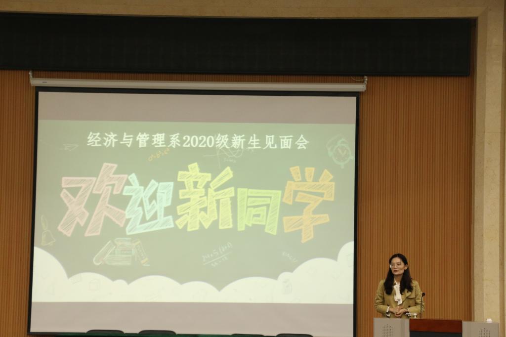 会议伊始,辅导员朱琳老师向新生表示热烈的欢迎。随后,朱老师向新生详细介绍了我系的发展历史,基本概况,师资力量、以及办学特色和学科优势,让大家对经济与管理系有了更深的了解。