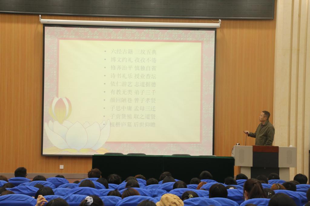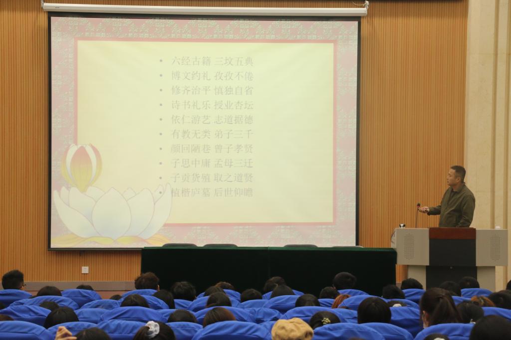 为弘扬传统儒家思想,提高同学们的个人素养,10月28日,经济与管理系(儒商学院)于三号楼报告厅举办新生入学教育“祭孔”主题讲座。党总支书记陆波全方位的向大家介绍大成至圣先师---孔子。