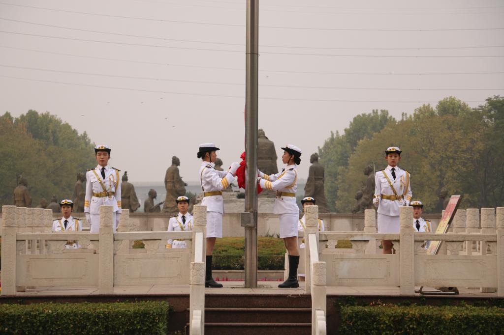 早上7时许,升旗仪式正式开始。在铿锵有力、整齐划一的脚步声中,国旗护卫队的旗手们护卫着鲜艳的五星红旗来到升旗台前。