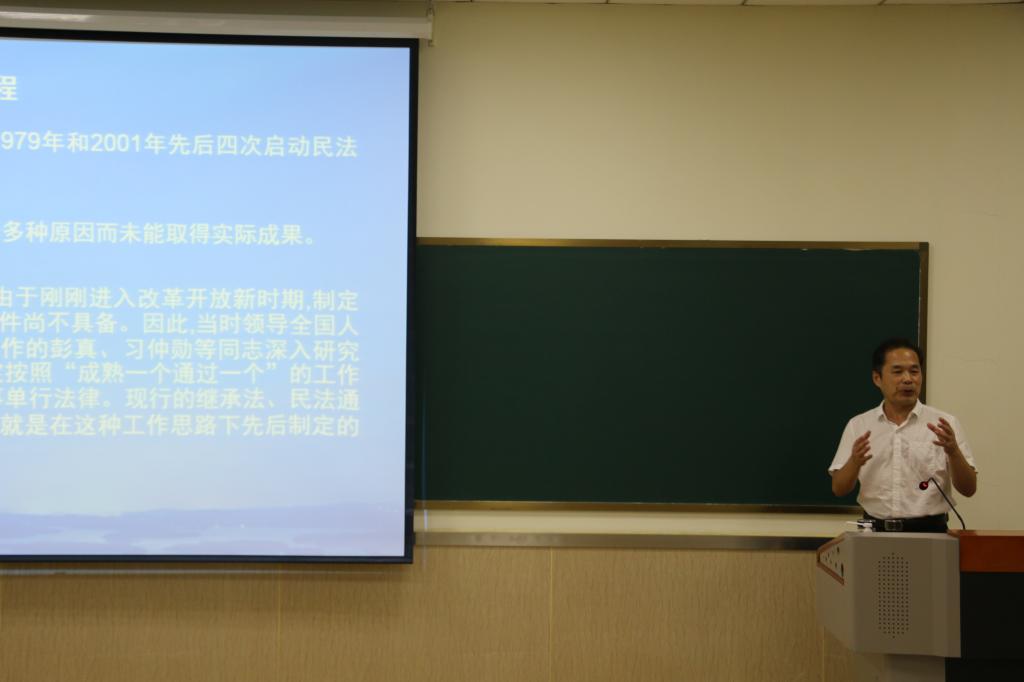 王爱军老师首先从《中华人民共和国民法典》的编纂历程讲起,讲述编纂过程的坎坷经历。并指出民法典是老百姓的百科全书,真正解决老百姓的问题。