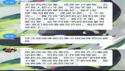 此次“团旗迎春风,齐心战疫情”主题团日活动在特殊的时期,以线上形式展开,团员青年更加坚决地贯彻党中央防疫精神,将习近平总书记向广大青年提出的重要要求内化于心、外化于行、进一步坚定理想信念、牢记使命担当。面对异常复杂的防疫形势,青年学生必与祖国同命运,与人民共患难,在困难中不断成长磨砺,担负起时代赋予的使命与责任。