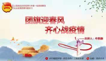 5月4日,团中央开展了“让青春为祖国绽放”网上主题团日活动。在团中央和我校团委的领导下,经济与管理系决定开展两次网上主题团日活动,本次团日活动以“团旗迎春风,齐心战疫情”为主题,以知近况、悟思想、谈感悟三部分为主要内容进行开展。