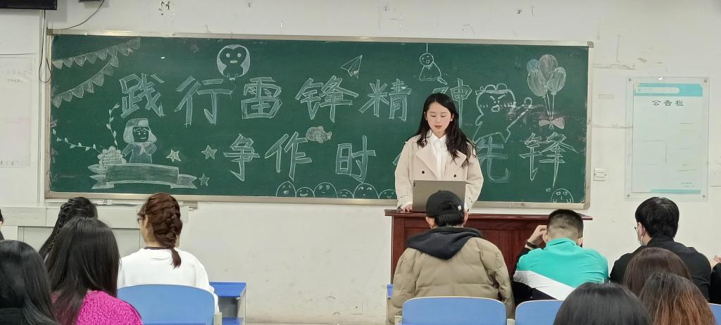 各支部团支书分别以“雷锋生平”“雷锋精神”“学习雷锋精神的意义”三个方面进行领学。团支书们首先向同学们介绍雷锋同志的生平事迹,观看雷锋精神的宣传片,同唱《学习雷锋好榜样》,引导同学们深刻领悟雷锋精神的内涵,缅怀雷锋同志的先进事迹,激励大家积极参加志愿服务。同时发动同学们利用课余时间收集有关雷锋的事迹的课外读物,互相讲述,在交流之中更好地理解雷锋精神的实质,让同学们认识到践行雷锋精神是我们每一个人的追求,要内化于心,外化于形,变成一种自觉的行为。