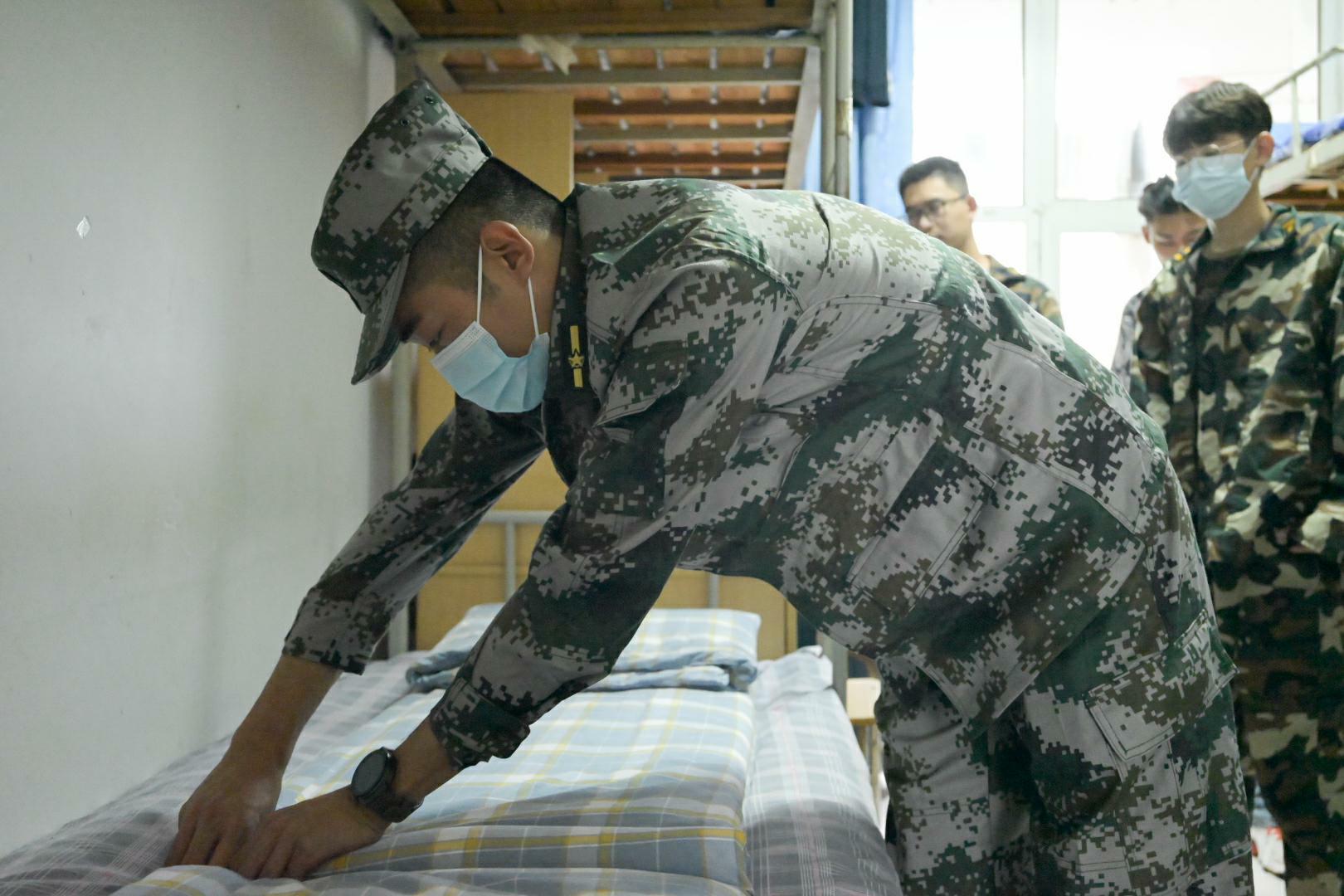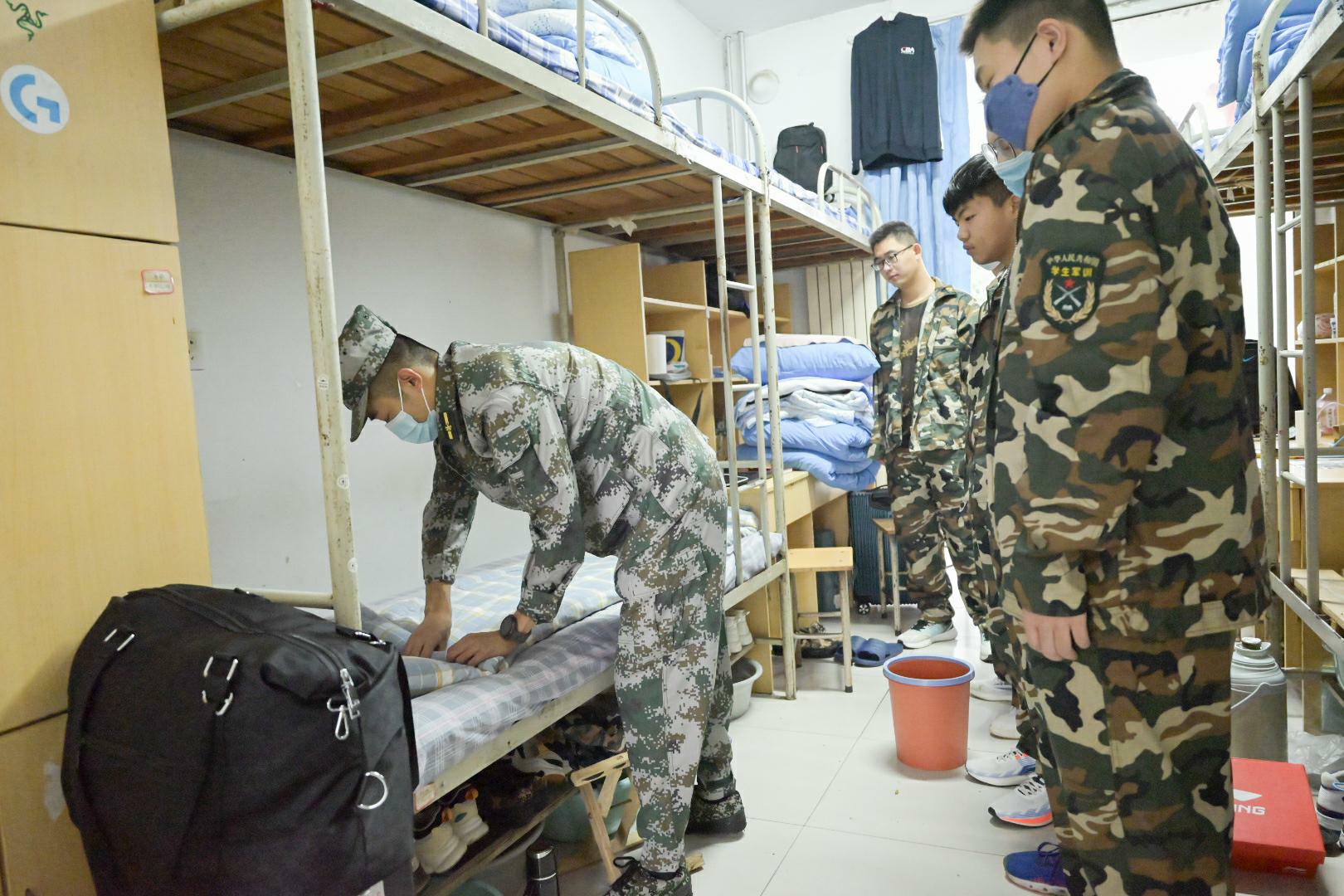为引导新生养成良好的生活习惯和生活作风,营造整洁舒适的生活环境,根据学校学生军事训练相关工作要求,10月3日,儒商学院组织新生进行军训内务整理训练,辅导员张俞、各连教官深入宿舍,开展寝室内务整理工作。