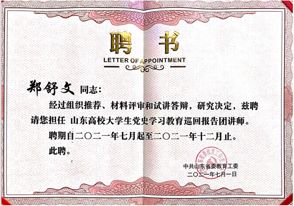 青年研习社骨干荣获山东省十佳“青年政治佳”