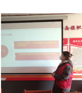 心得感悟:通过对党的二十大精神的宣讲,使我更加理解了党的二十大精神内涵。党的二十大胜利召开,对全面建设社会主义现代化国家、全面推进中华民族伟大复兴进行了战略部署。未来五年是全面建设社会主义现代化国家开局起步的关键时期,做好今后五年的工作,对于实现第二个百年奋斗目标至关重要。我们要深入学习宣传贯彻党的二十大精神,衷心拥护“两个确立”、忠诚践行“两个维护”,不忘初心、牢记使命,踔厉奋发、勇毅前行,凝心聚力朝着大会描绘的新蓝图、指引的新方向不懈奋斗。