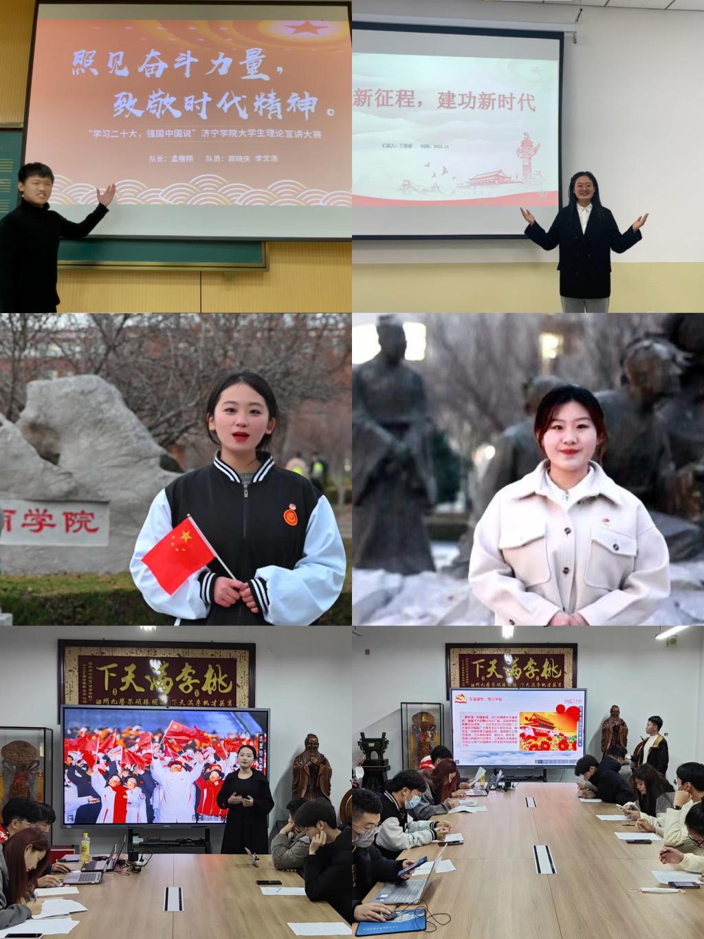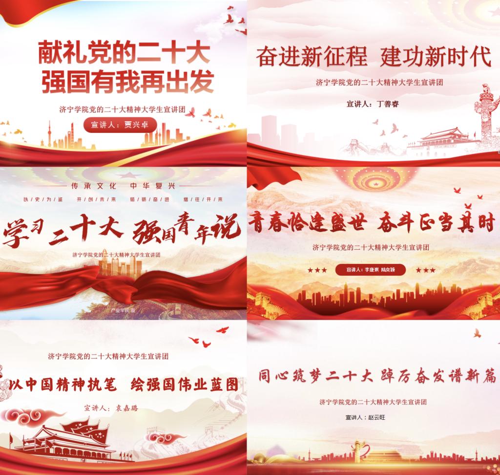 活动中,宣讲团成员集中专题学习了党的二十大报告,并围绕“如何提升党的二十大精神的宣讲效果”进行多次交流研讨,马克思主义学院丁善睿、人文与传播学院申钰凤、儒商学院贾兴卓、教师教育学院滕安萁、美术学院袁嘉璐、音乐学院李康琪、数学与计算机应用技术学院宋雨琪、物理科学与智能工程学院贺萌檬、产业学院黄国轩等18组同学分批次作示范宣讲。宣讲团指导教师结合优秀宣讲案例分析,从严把基调导向、明确宣讲对象、突出宣讲重点、坚持理论与实践相结合以及选准落脚点等方面展开,向同学们分享了开展主题宣讲的方法和技巧,鼓励同学们善用青年视角,善讲“青言青语”,讲好中国故事,讲好济园故事,使宣讲既“接地气”又“冒热气”,让宣讲团的声音真正走进同学们的心坎里。经过前期培训、选题、组稿、审核、试讲等环节,大学生宣讲团紧紧围绕党的二十大精神,打磨形成了《讴歌非凡十年,礼赞伟大变革》《奋进新征程,建功新时代》《照见奋斗力量,致敬时代精神》《青春恰逢盛世,奋斗正当其时》《青春献礼二十大,强国有我再出发》等12个主题宣讲作品。