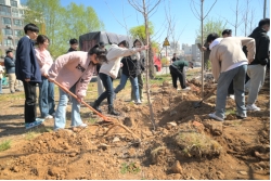 活动中,我院志愿者不畏辛苦,奋勇争先,在到达植树地点后,纷纷拿起锄头、水桶等工具,按照分工挥锄挖坑、植树填土、浇水灌溉,以极大的热情投入到植树工作中来,用辛勤的汗水浇灌着一棵棵满载希望的新春树苗。微风中,树苗摇摆着身姿,与志愿者辛勤劳作的背影一起,构成了济院春天中最美的风景线。